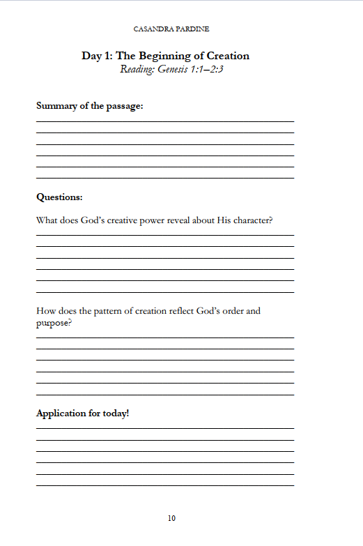 This study will guide you step by step through the book of Genesis, making it easy to understand, apply, and reflect on in just 10 minutes a day.
